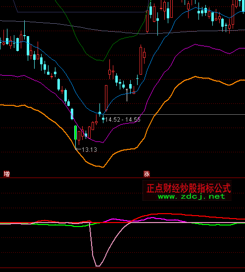 主力开始进: IF(V4>=0,V4,0),COLORFF00FF,LINETHICK2;
