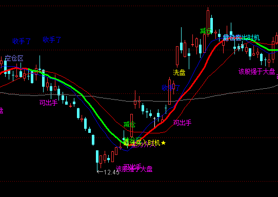 DRAWTEXT(CROSS(MA(CLOSE,5),MA(CLOSE,10)),L*0.92,'可出手'),COLORFF00FF;