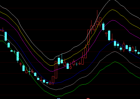 通达信波动幅度主图通道买卖指标公式实例图解: