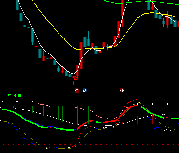 多方:=IF(A1X>=0,REF(EMA(C,10),BARSLAST(CROSS(A1X,0))+1),DRAWNULL);