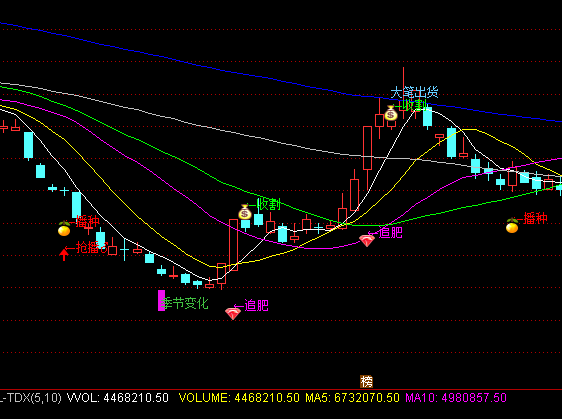 DRAWTEXT(CROSS(J,REF(J+0.01,1)) AND X AND J<20,LOW*0.95,'←播种'),COLORRED,LINETHICK2;