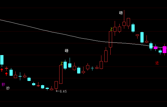 DRAWTEXT(CROSS(0.94,(L/(MA(CLOSE,60) * 0.9))) AND C>L,L*0.9,'抄'),COLORWHITE;