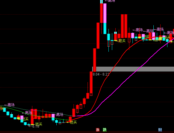 DRAWTEXT(VAR1A,REF(CLOSE,1)+0.1,'←离场'),COLORFF99FF;