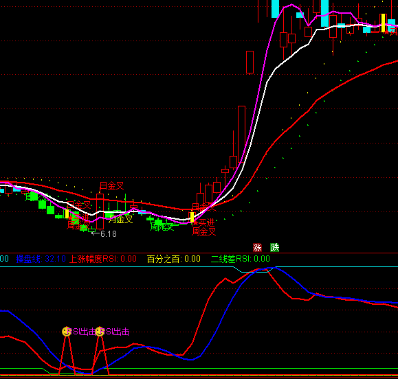 DRAWTEXT((AA1-BB1)/BB1>N1/10,40,'RSI出击'),COLORF00FF0;