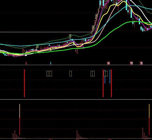 红色警报A:STICKLINE(VTD2 AND FILTER(VTD1< REF(VTD1,1),6) AND CROSS(MA(CLOSE,5),MA(CLOSE,2)),VTD1+6,0,2,0);