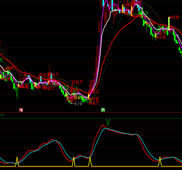 波段买入:IF(CROSS(买线,卖线) AND (买线<30),20,0),COLORYELLOW,LINETHICK2;