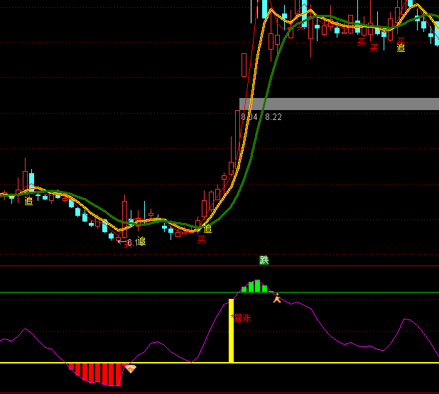 DRAWTEXT(选股,120,'*暴涨'),COLORRED;